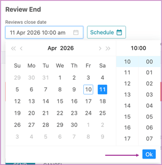 To make things easier, you can schedule your survey’s closing date in advance instead of closing it manually. This ensures your review process ends automatically at your preferred time.